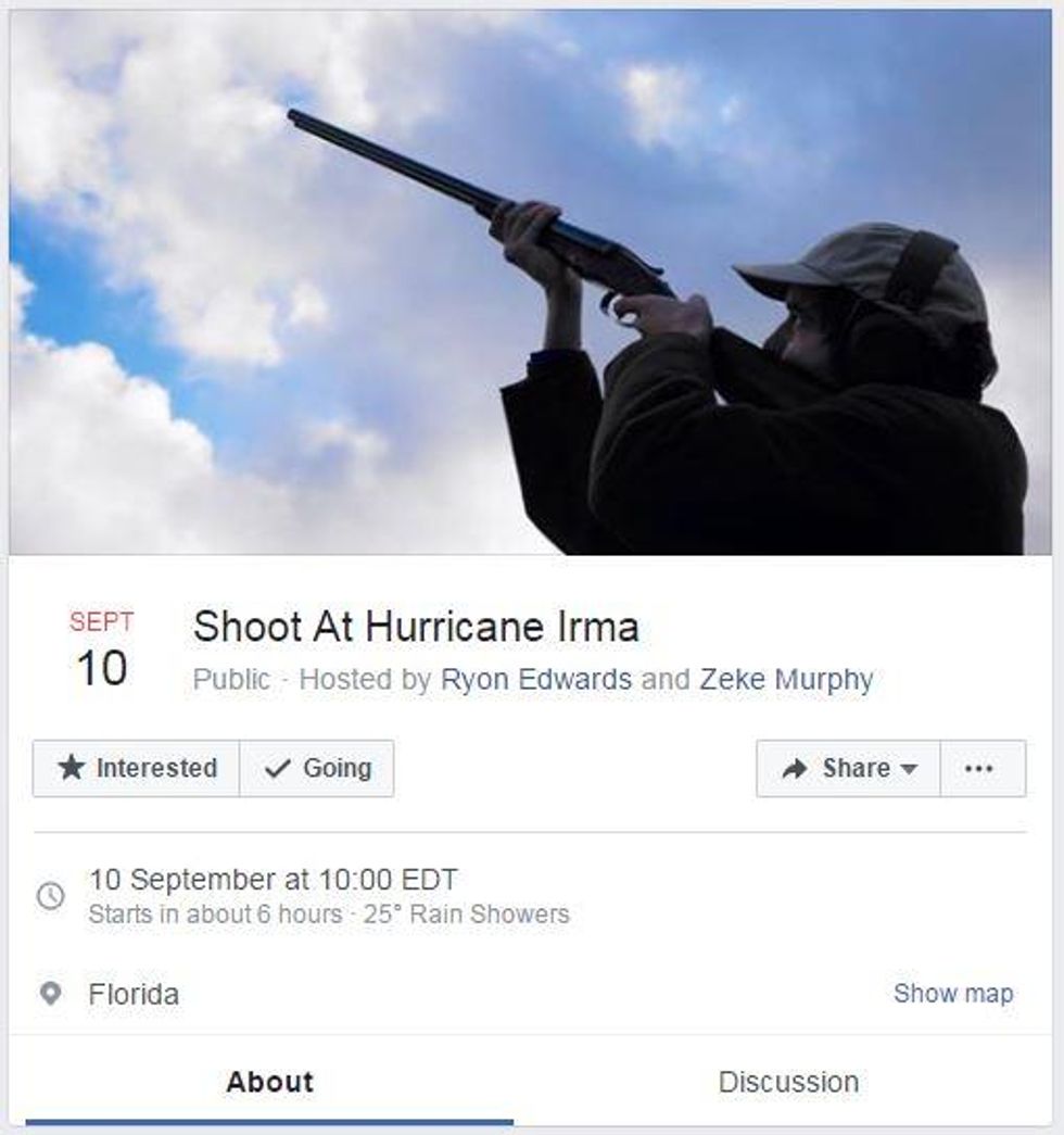 On Saturday, The Independent reported on an event on Facebook 'Shoot at Hurricane Irma'.