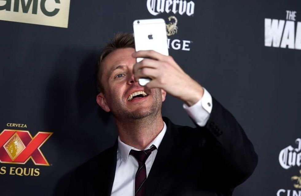 Chris Hardwick takes a selfie at the season 5 premiere of The Walking Dead.