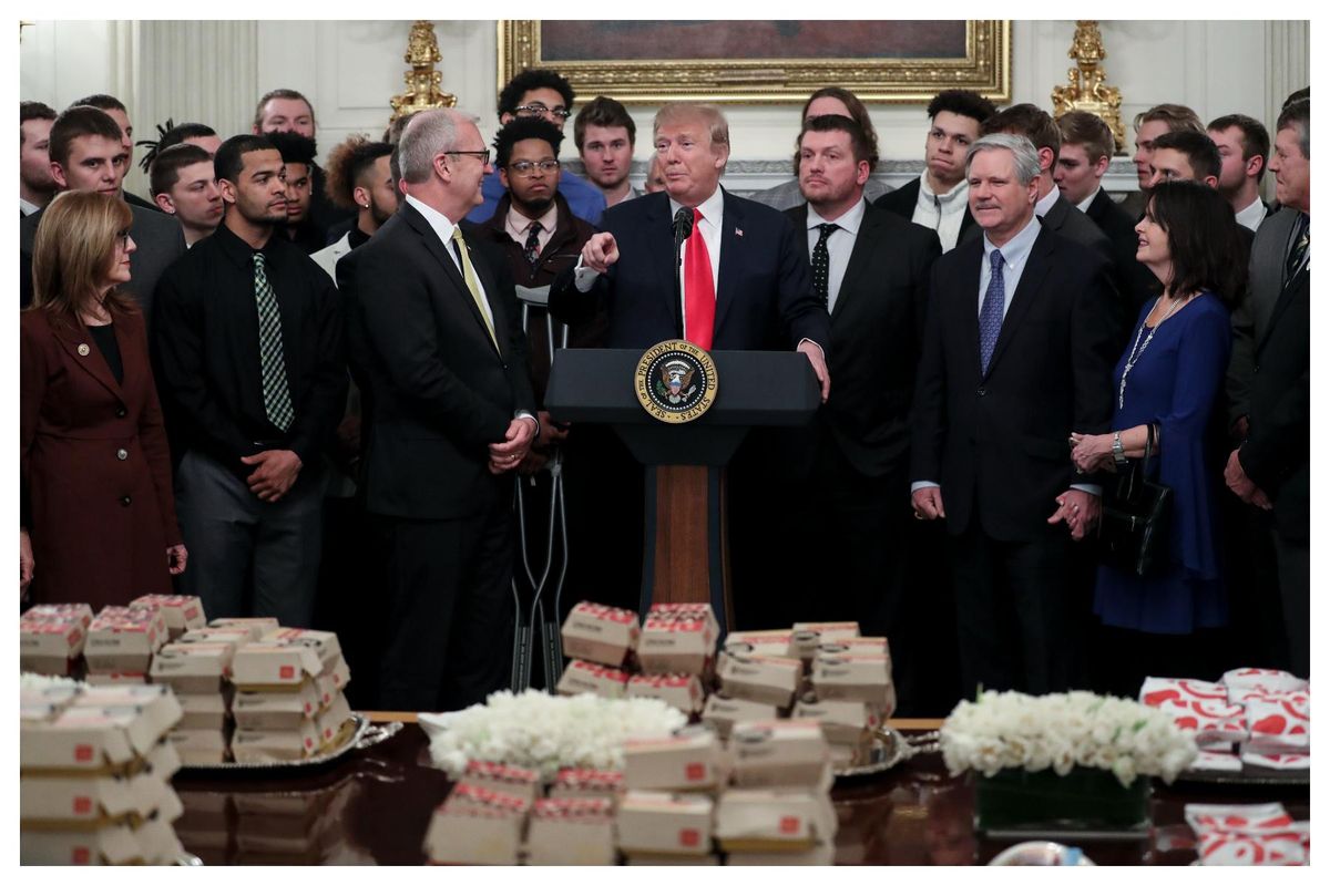 In 2019, Trump even took his love for the Golden Arches to new levels, serving fast food to the Clemson Tigers and North Dakota State Bison when they visited the White House in celebration of their college football national championships.