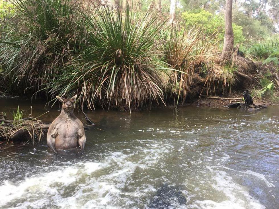 The kangaroo, photographed in the Boodjidup Creek, in Margaret River, by Jackson Kingsley Vincent, went viral when the photographs were published to Facebook.