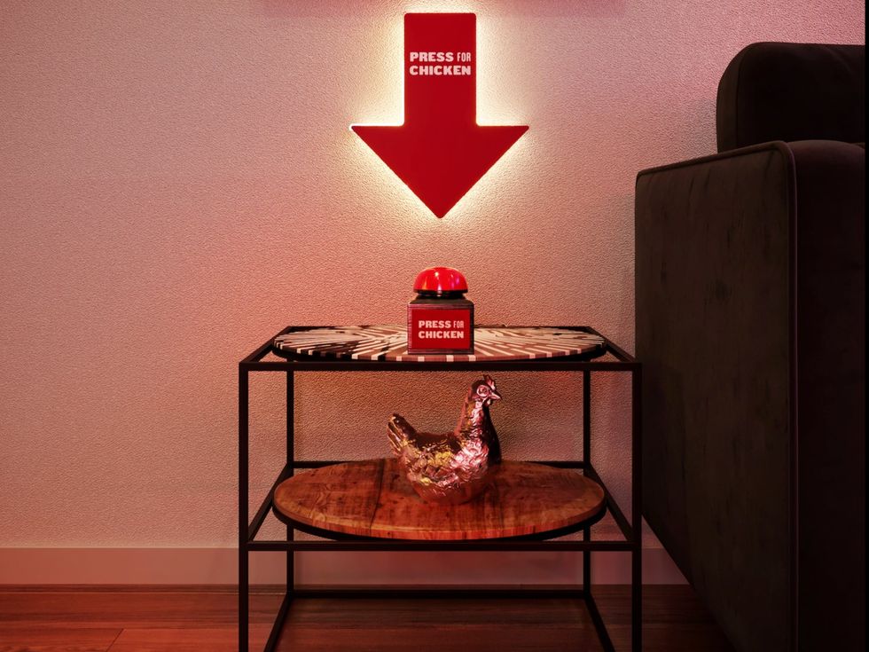 The fast-food chain announced they are opening a KFC-themed pop-up hotel in London – with a “press for chicken” button in every room. Yes, you heard that right. You can have your very own chicken concierge at your fingertips.