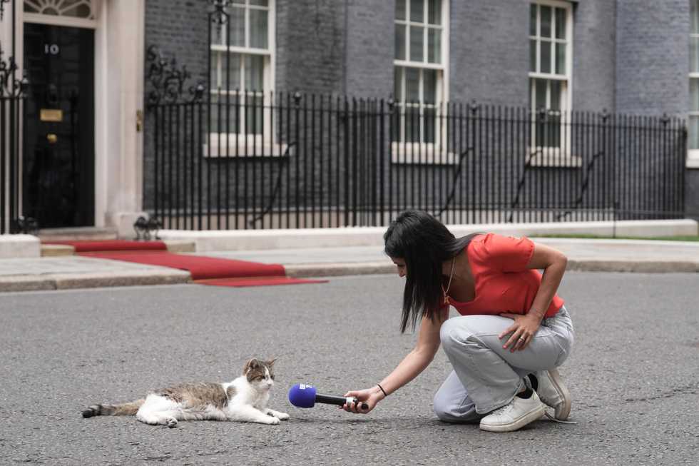 Akshata Murty, the wife of former prime minister and chancellor Rishi Sunak, once told Sky News Larry had “heated exchanges” with her family’s Labrador puppy Nova while they lived in Downing Street, with the cat always having “come out on top”.
