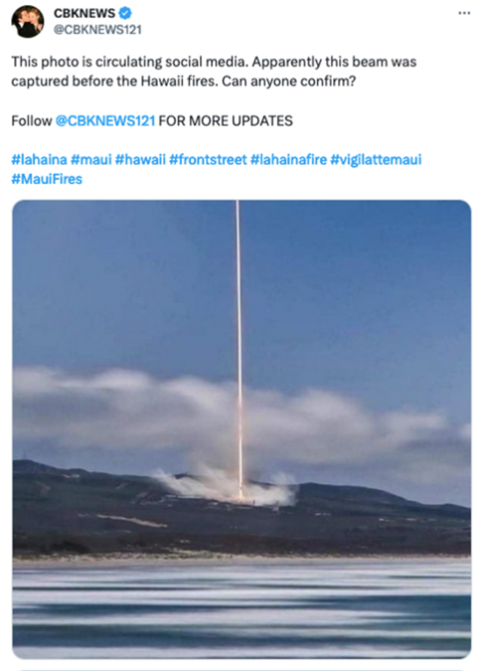 Once again there is no evidence to suggest that the Maui fires were caused by the US or Chinese governments or were started by a giant laser beam from space.