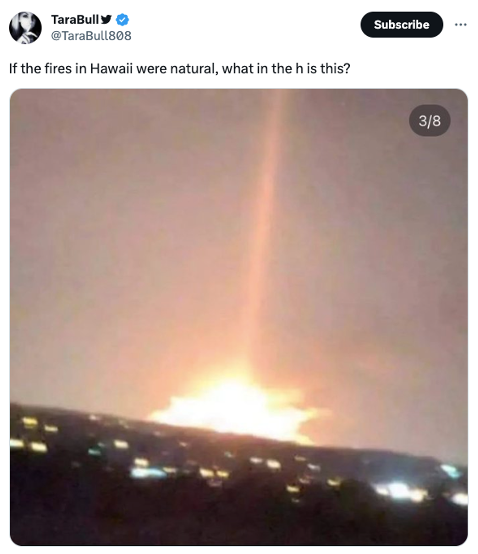 A verified account on Elon Musk's X website, formerly known as Twitter, asked its followers: "This photo is circulating social media. Apparently, this beam was captured before the Hawaii fires. Can anyone confirm?" The post has been liked more than 6000 times and had more than 300 shares.
