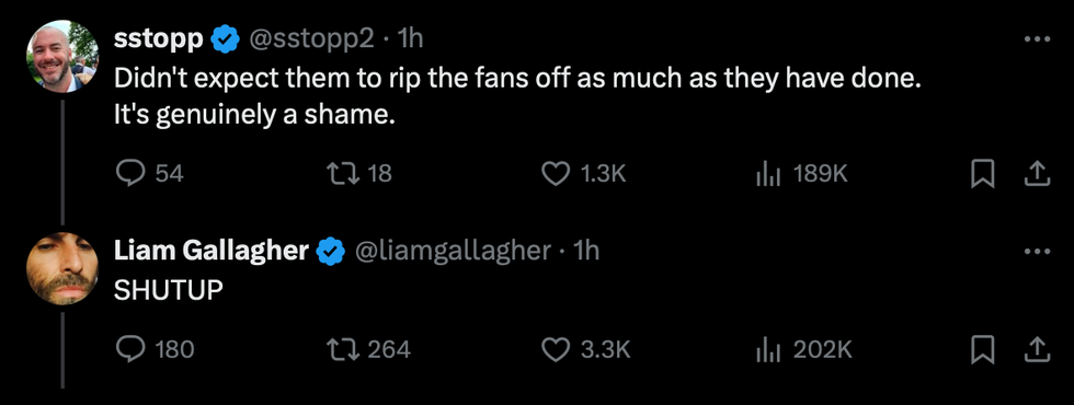 Liam Gallagher has issued a brutal two-word statement following the fallout from the Oasis ticket sales after fans complained about the cost, leaving millions disappointed.