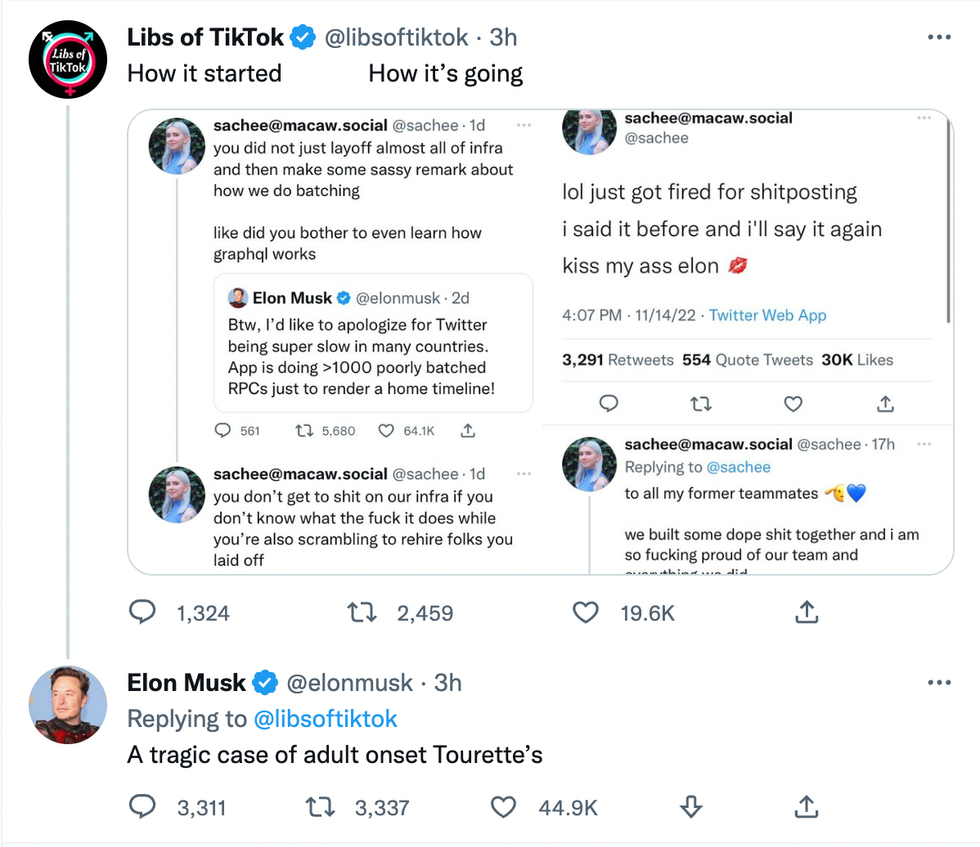 \u201cWelcoming back Ligma & Johnson!\u201d— Elon Musk (@Elon Musk) 1668544854