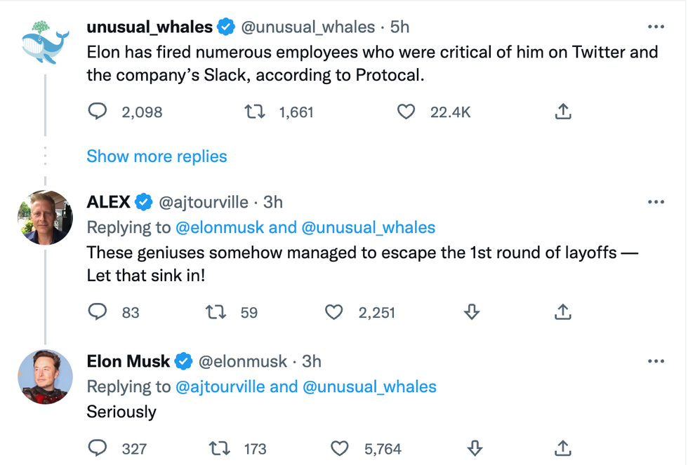 Given rumors had swirled before the takeover that Musk planned on cutting a large portion of Twitter's staff upon acquisition, it was pretty believable.
