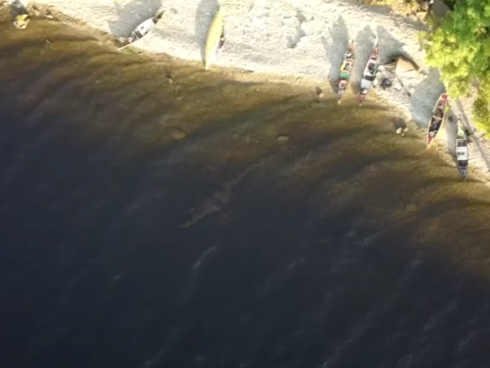 The clip was filmed by Richard Mavor, who runs the adventure-based YouTube channel Richard Outdoors, and shows an aerial shot of a beach around the loch.