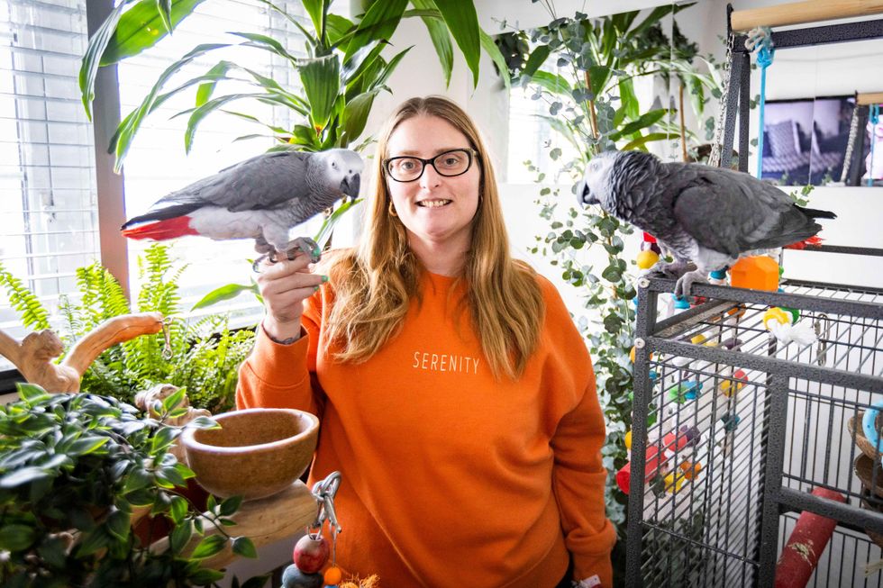 Lesley Herbert, who won £2m on a National Lottery Scratchcard, has created a haven in her home for her two African grey parrots – including a flat-screen TV so they can watch Dog The Bounty Hunter (Camelot/PA)