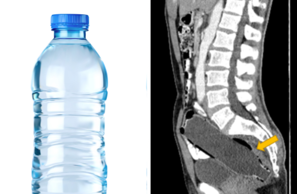 Doctors were shocked to find a water bottle stuck in a man's butt after he was said to be experiencing abdominal pain.