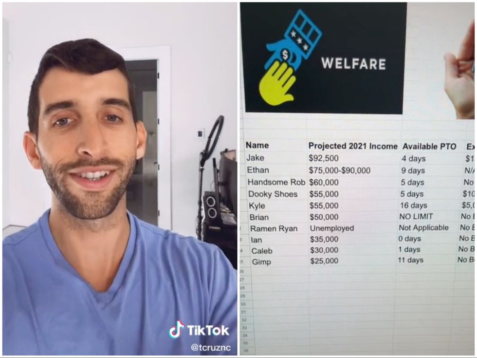 Despite deleting the original clip from his TikTok account, Cruz went on to post a follow up video listing his lowest earning friends, “who call themselves the Welfare 10”.