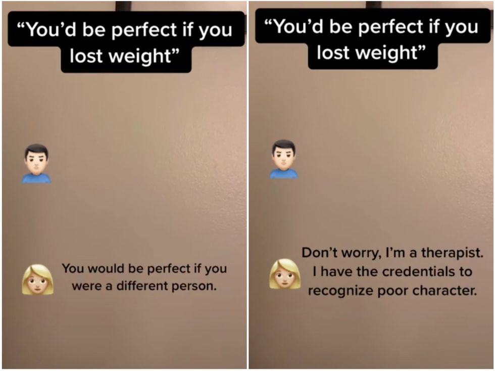 In her reenactment of the discussion, the man, who she didn’t name, told her: “You would be perfect if you lost like seven pounds.”