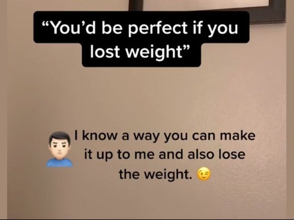 He then said: “I know a way you can make it up to me and also lose the weight,” followed by a winky emoji.