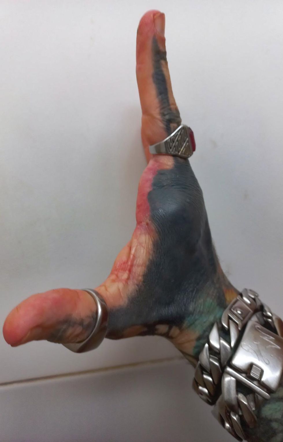 Marcelo, who has 1,500 tattoos, claims the procedure was carefully analysed for two weeks prior to surgery, with the index finger carefully cut off at the knuckle.