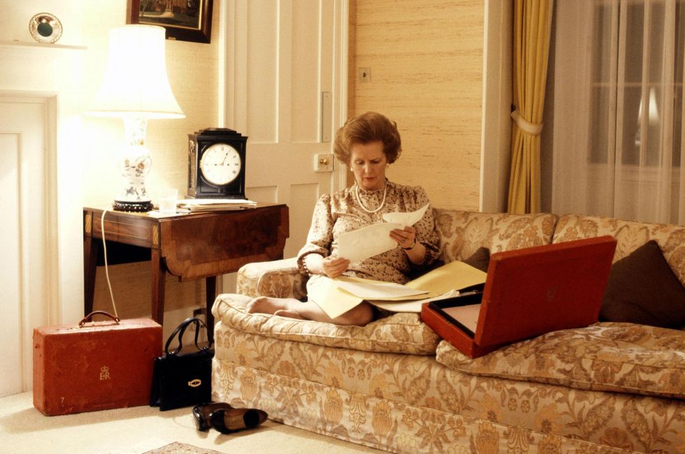 Those with a long memory were reminded of this image of Margaret Thatcher, in a similar pose in Downing Street, 1983.