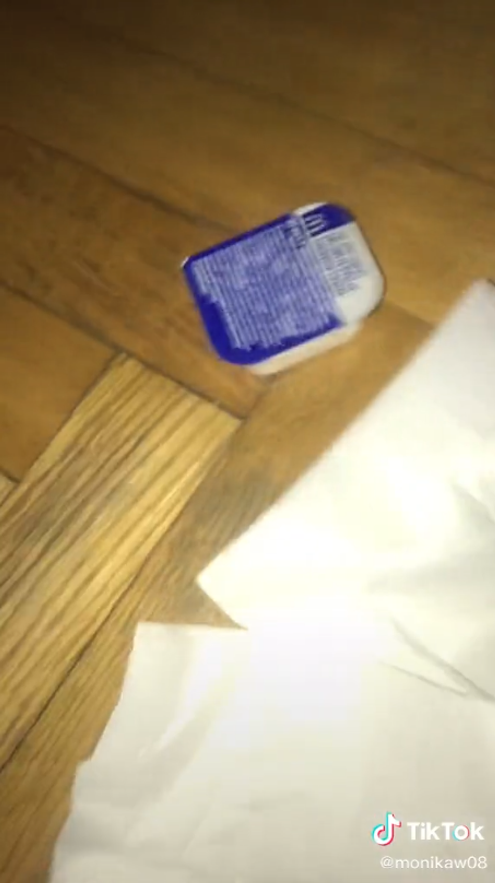 The video then shows Monikaw opening five different paper bags, each one smaller than the last (much like a Russian Doll toy) and then several napkins to get to the sauce.