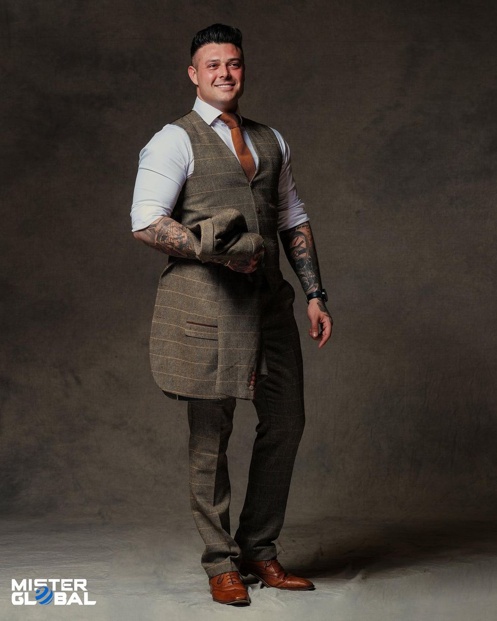 Mister Global UK, Lewis Ellis, chose to wear a UK-inspired suit.