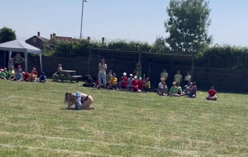 A mum who faceplanted during a parents' race at her daughter's school sports day - and mooned the crowd - has called it the "funniest thing I've ever done."