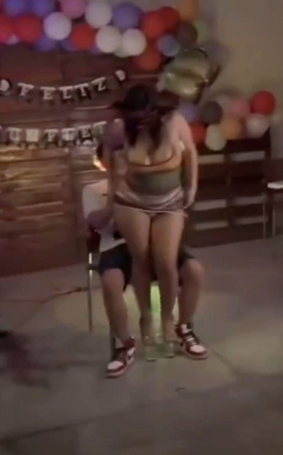 The woman is seen performing a saucy dance on the birthday boy as the clip comes to an end.