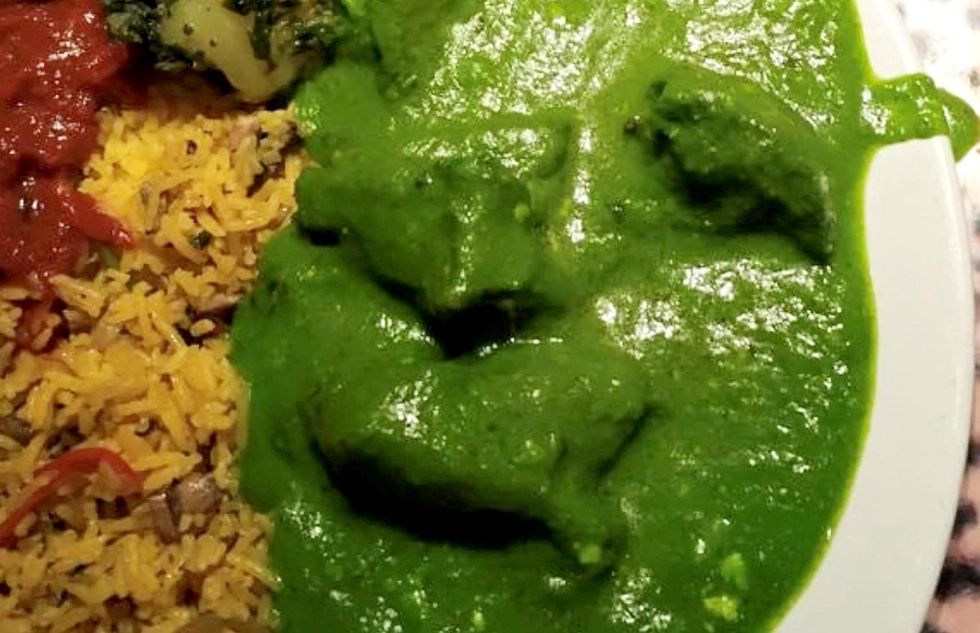 She got her usual order of Hariyali green curry - a north Indian-style chicken curry.
