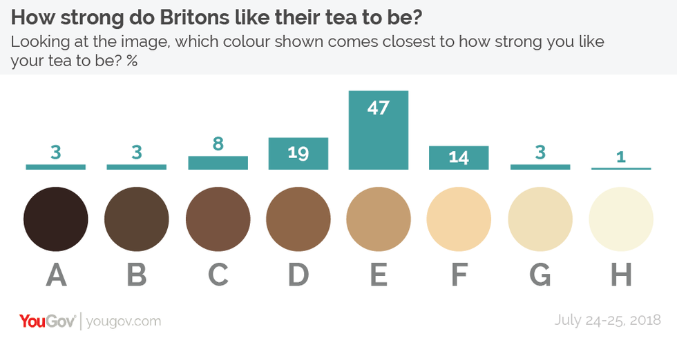 Though some people prefer their cuppa stronger with option D coming in second at 19%. A lighter option, F, came third with 14%.