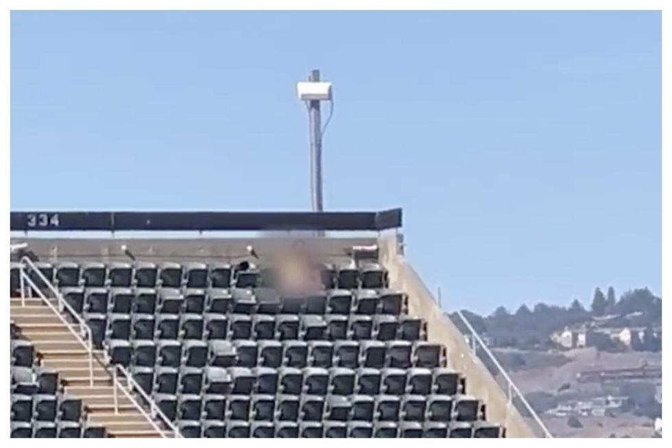 On Sunday (21 August), the two fans were accused of getting busy at some point during the Athletics' tilt with the Mariners at RingCentral Coliseum in California.
