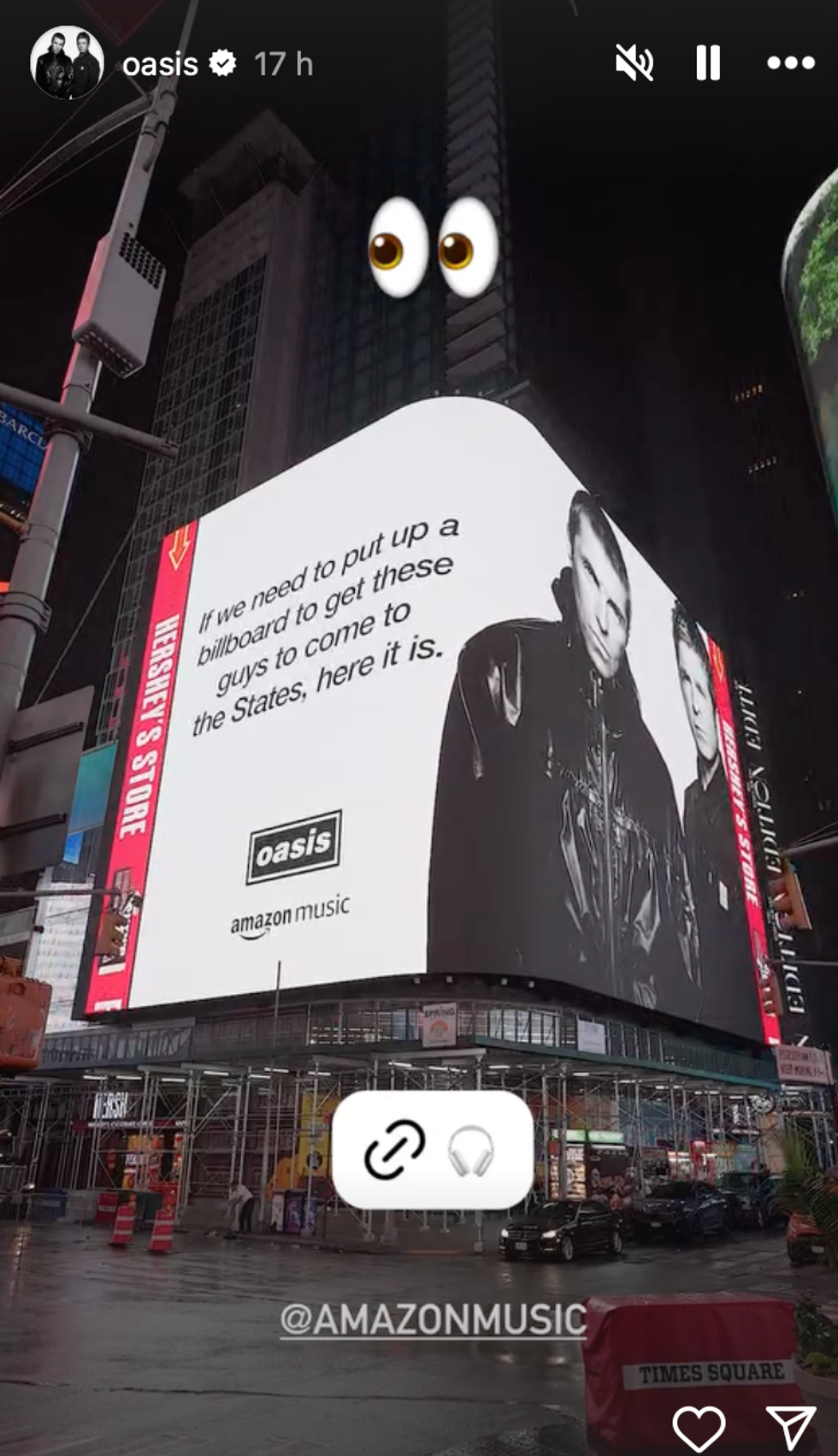 The band shared footage of the billboard on their Instagram Stories, captioning it with the eyes emoji. They also included a link that directed fans to their Definitely Maybe album.
