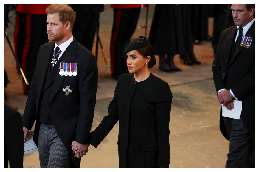 And when it was the Duke and Duchess of Sussex's turn, they bowed and curtsied to the Queen's coffin before leaving Westminster Hall, taking each other's hand - and some haters had a problem with it.