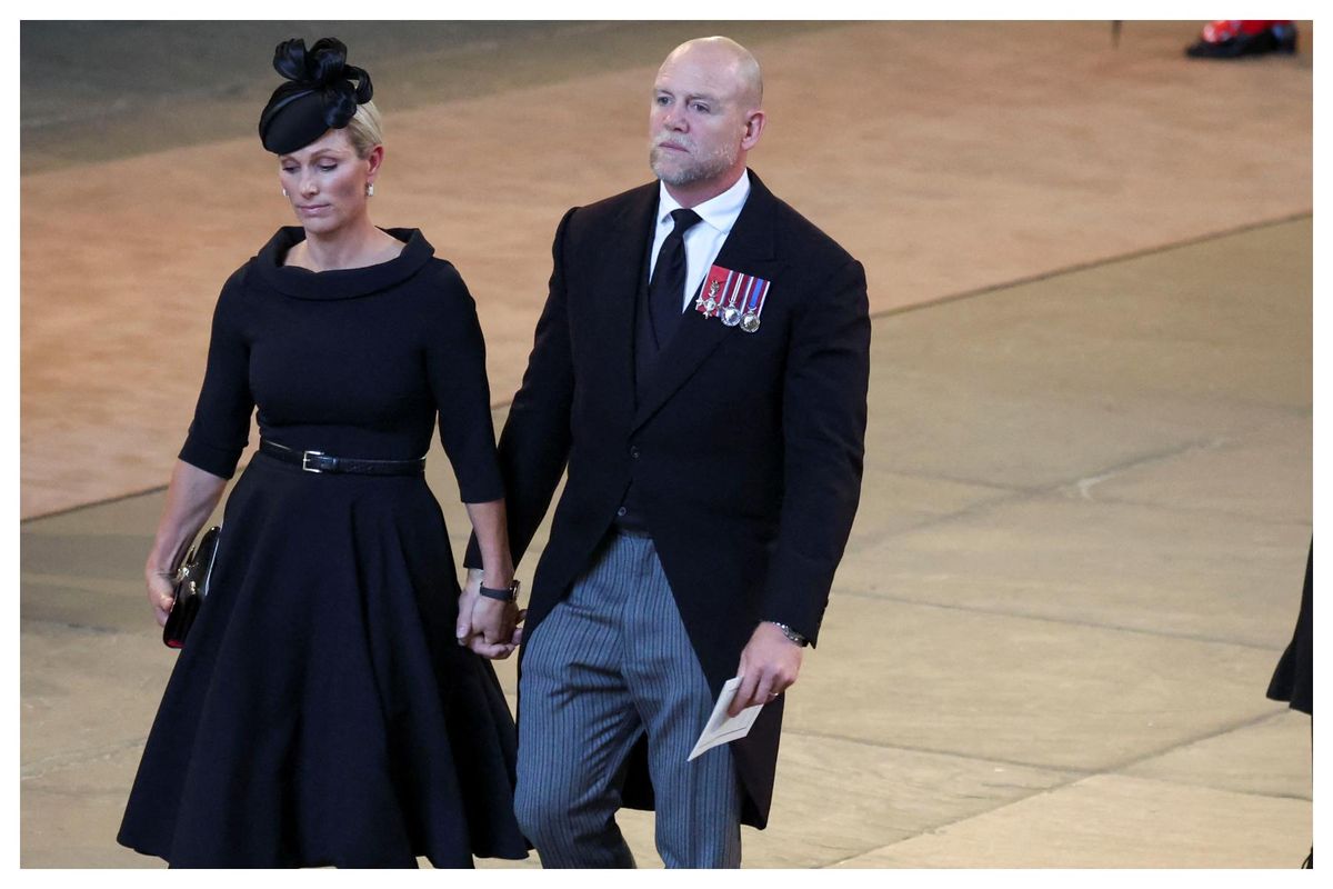 Anne, Princess Royal's daughter Zara Tindall and her husband, Mike Tindall, were also hand-in-hand as they exited Westminster Hall.