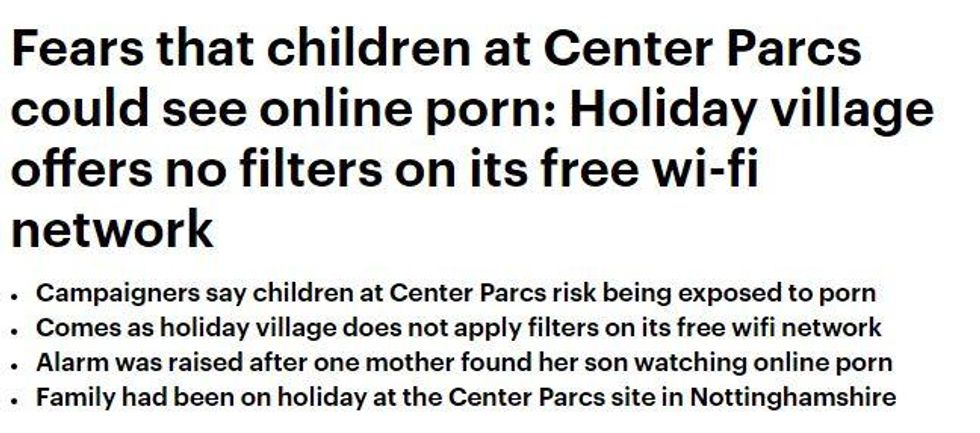 The Daily Mail is panicking its readers with news that children at Center Parcs are going to be inundated with porn because there's no blocker on the wifi.