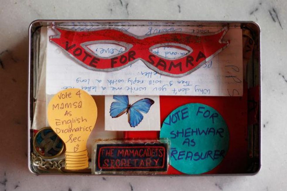 This is my box of random knick-knacks from my schooldays: campaign flyers from student council elections, notes we passed etc. Among them is a small book all my teachers signed when I was graduating. Looking through this box takes me back to a time when my worries were limited to how well I’d do in the next test.
