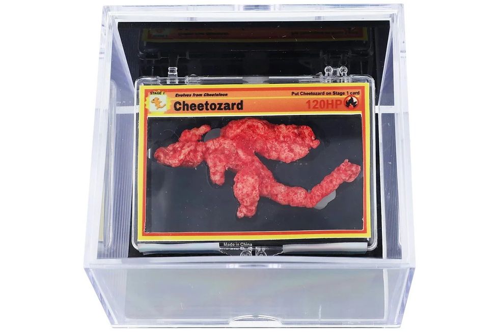 They added a display box with a Pokémon card background and the three-inch Cheeto was reportedly acquired by the online card marketplace, Arena Club.