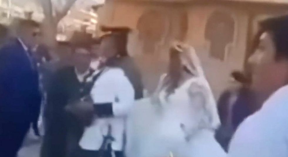The happy couple were walking through the square outside the church in Bolivia, having just tied the knot, when the alleged attack happened.