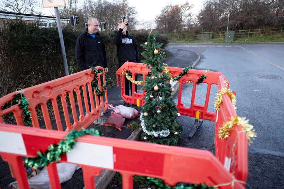 Dad-of-two David Griffiths, 48, a software developer, lives next to the newly-decorated roadworks and said locals have even been adding baubles to the tree.