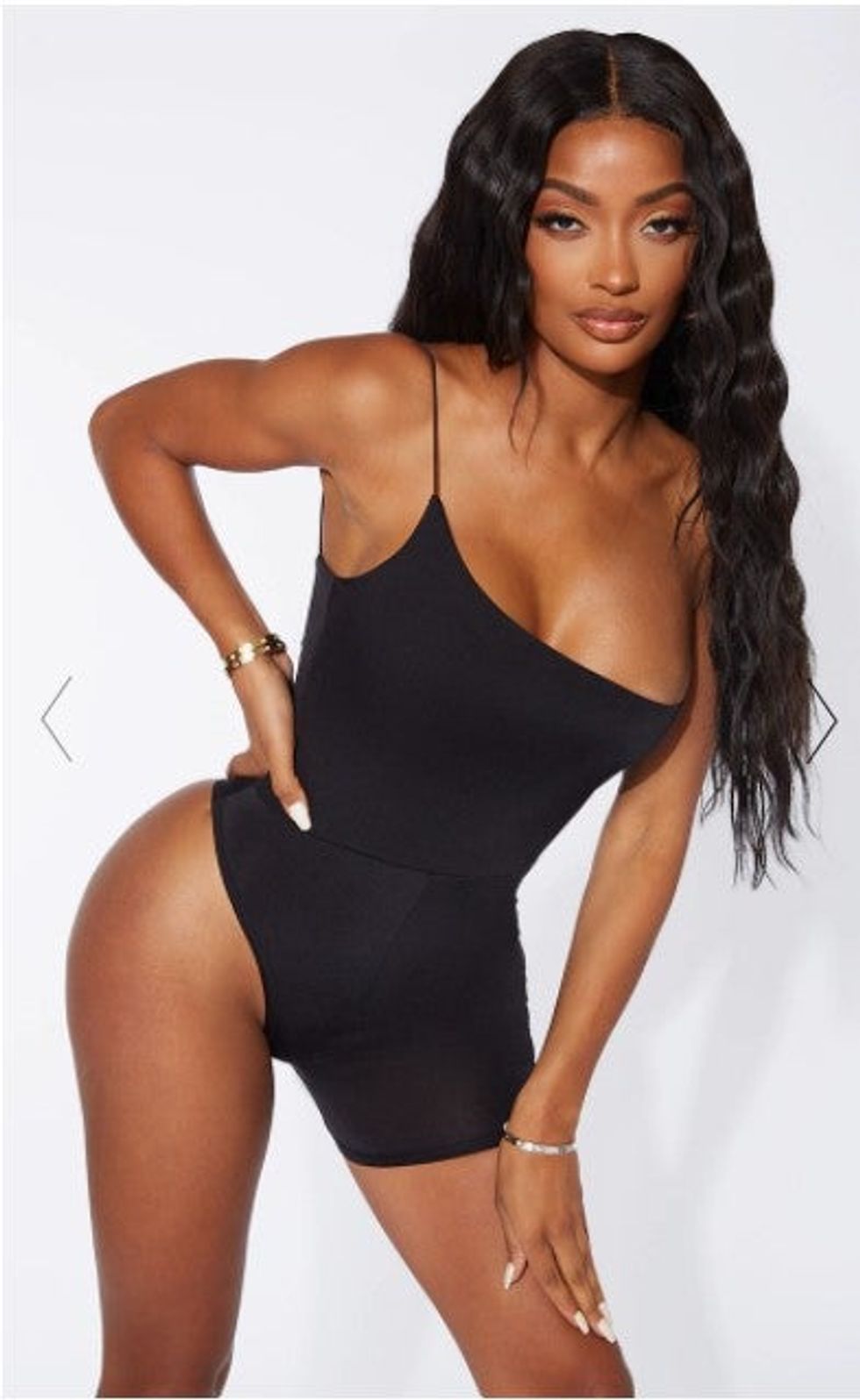 In an attempt to shift this strange outfit, a description of it on the website says: “This unitard is sure to add some drama to your new season wardrobe doll. Featuring a black slinky material with a one shoulder neckline and cut out detail, we’re obsessed.”