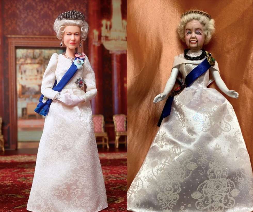 “It was hard to find the doll I wanted, so I used a sander to remodel one and make him elegant.” With Lou’s Queen portrait, she based it on the official Barbie doll of Her Majesty ahead of the Jubilee.