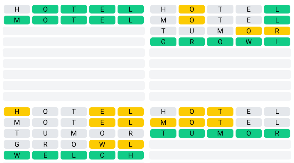 Quordle is essentially Wordle on steroids, with the opportunity to guess four words instead of one. The premise of the game gets easier after a few practices – though it's harder to maintain a streak.