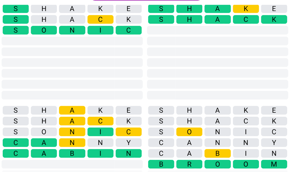 You have nine chances to guess all four words. Each attempt populates all four grids.