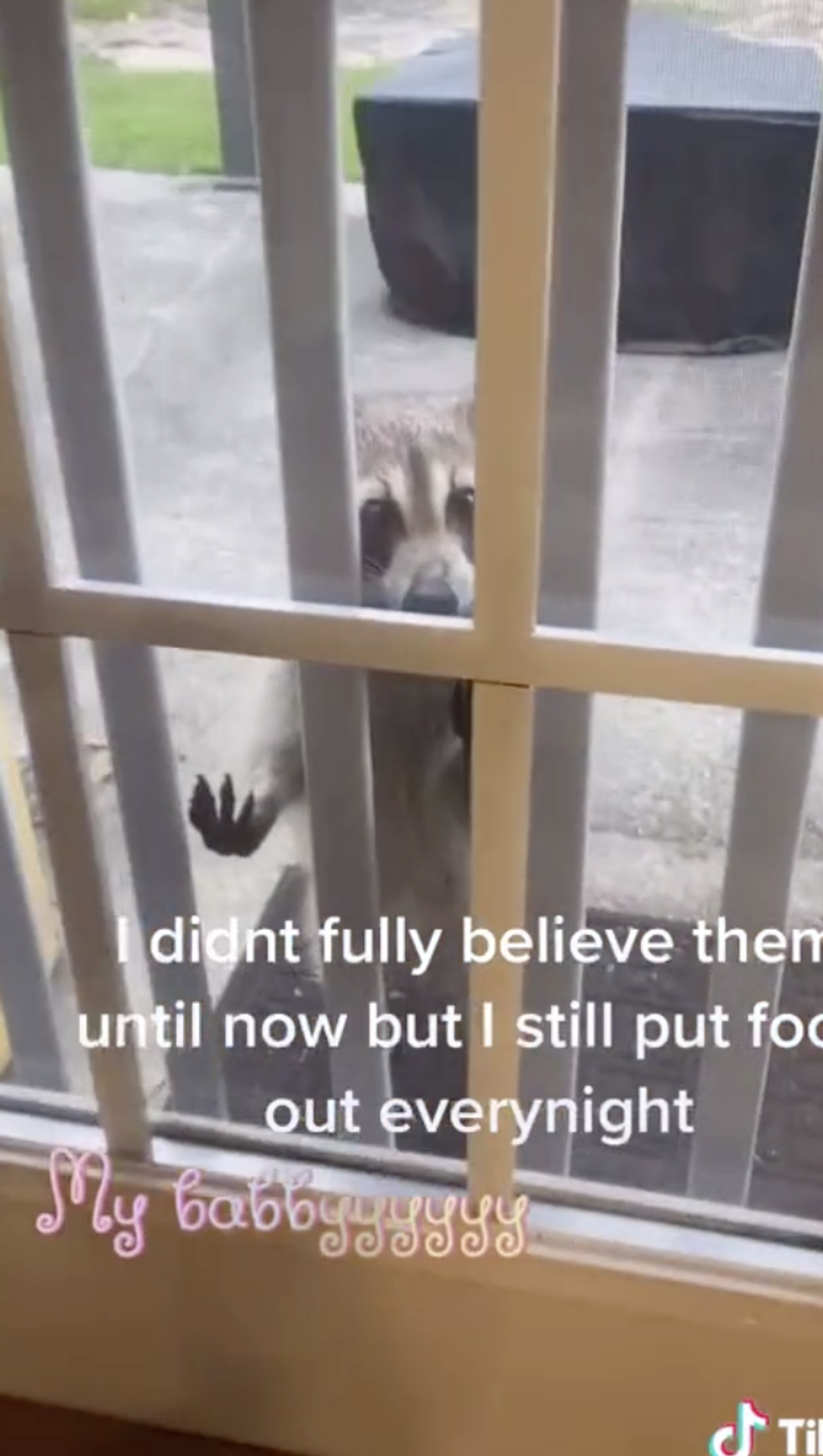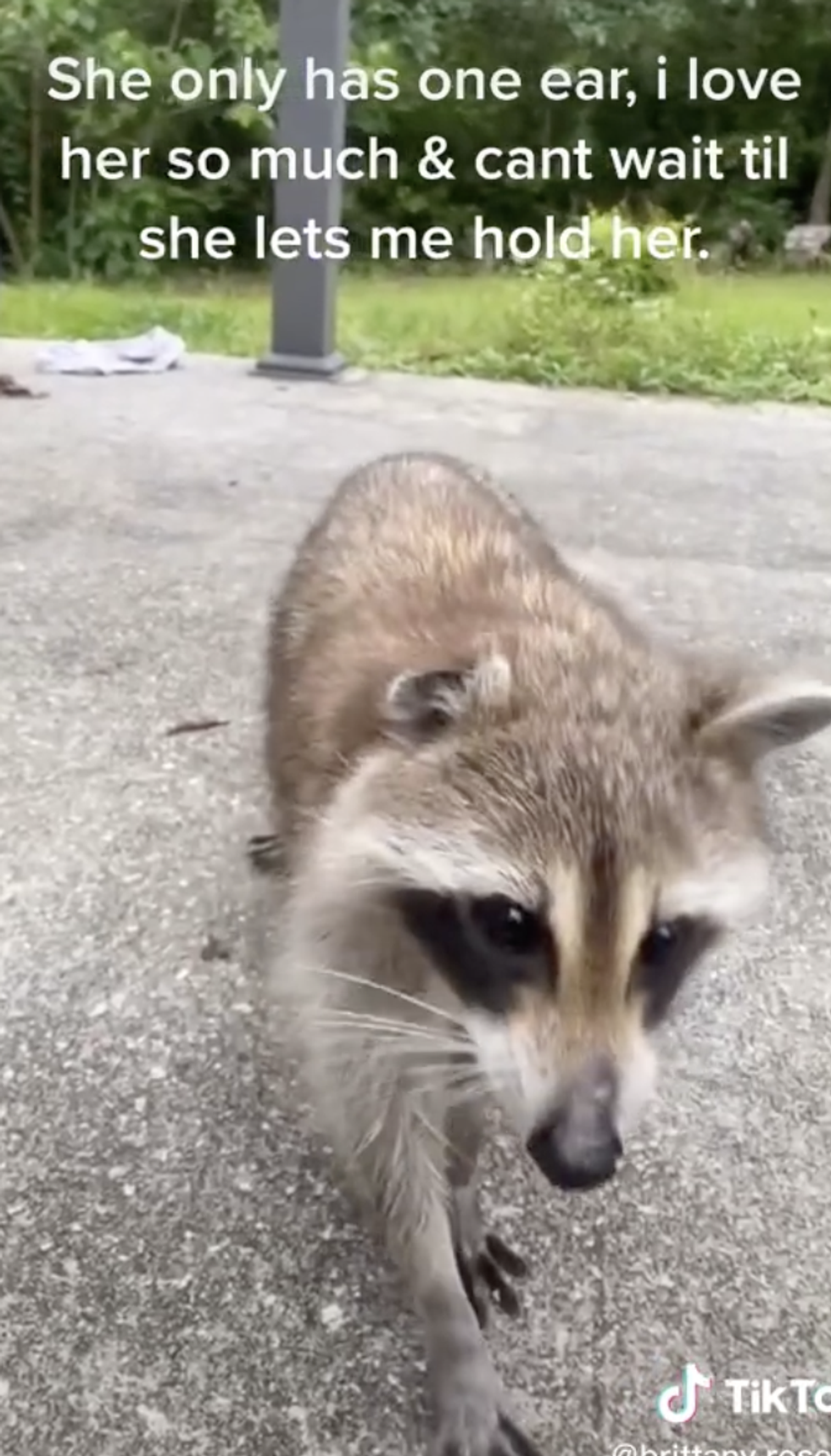 Brittanyrose, who goes by @brittany.rose.xo, posted a video of her interactions with a raccoon outside of her house.