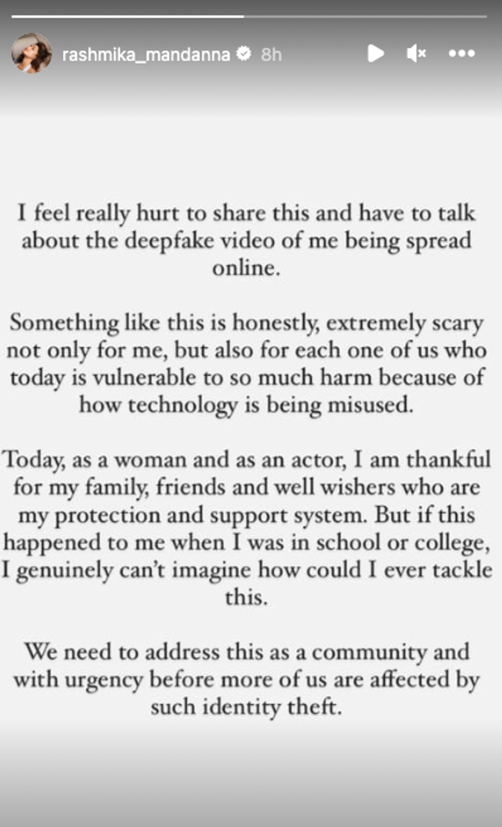 Meanwhile, Patel has also said that she had reported the video on Instagram and called for similar action to be taken. On X/Twitter the influencer wrote: "I've reported this deep fake video of me and instagram hasnt taken it down. We seriously need prompt action when it comes to things like this. Do better @instagram."