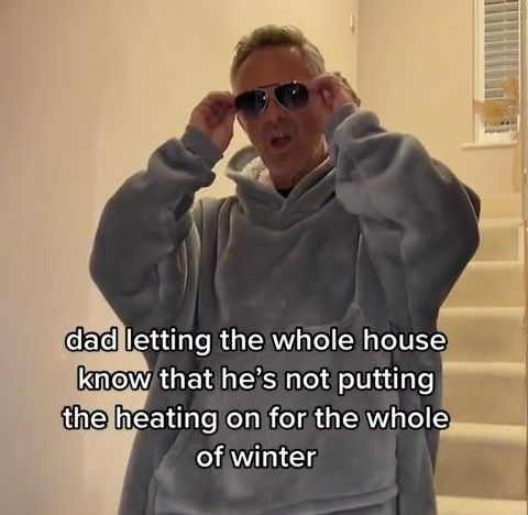 The on-screen text said: "dad letting the whole house know he's not putting the heating on for the whole of winter," as he swaggered down the stair sporting sunglasses to show who's boss.