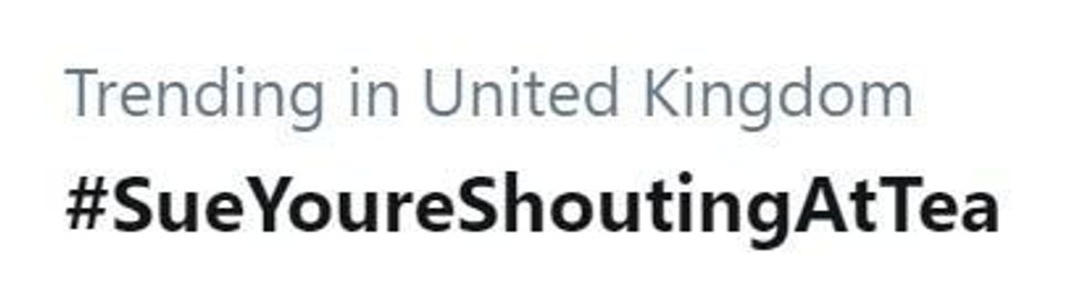 The tea brand then defended itself against a woman named “Sue” with the now-iconic comeback “Sue you’re shouting at tea”.
