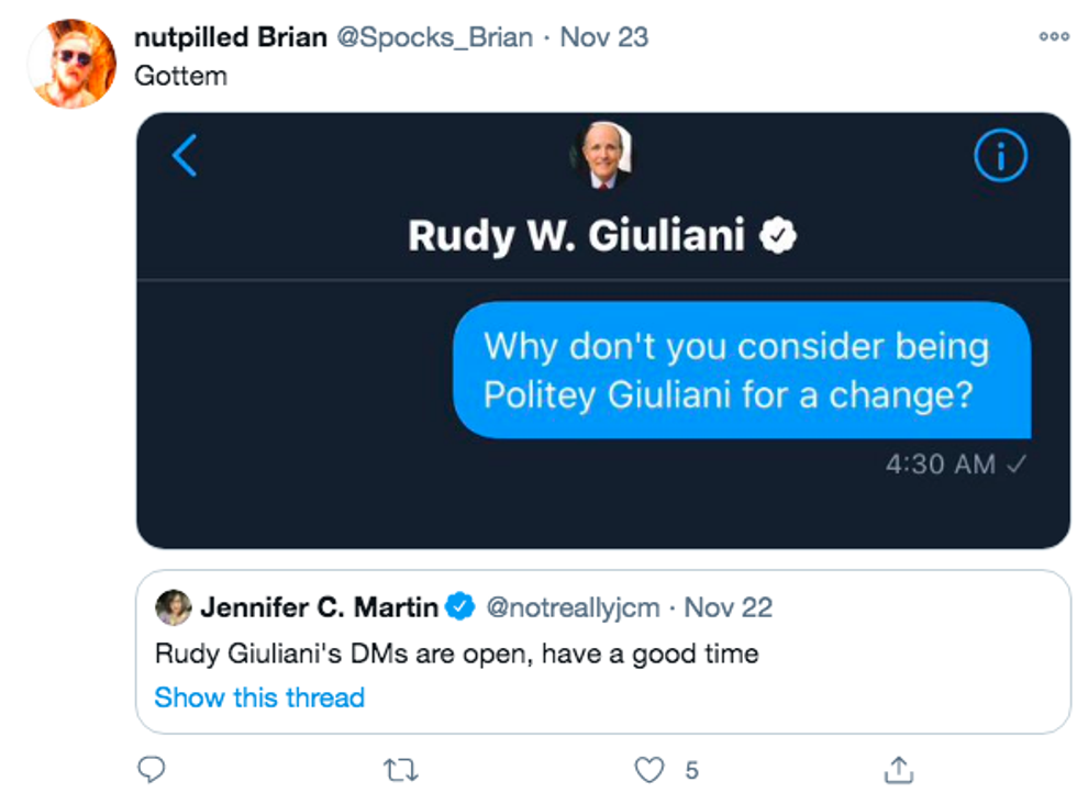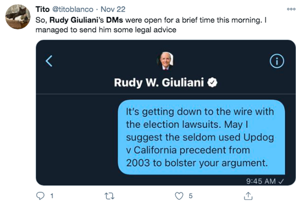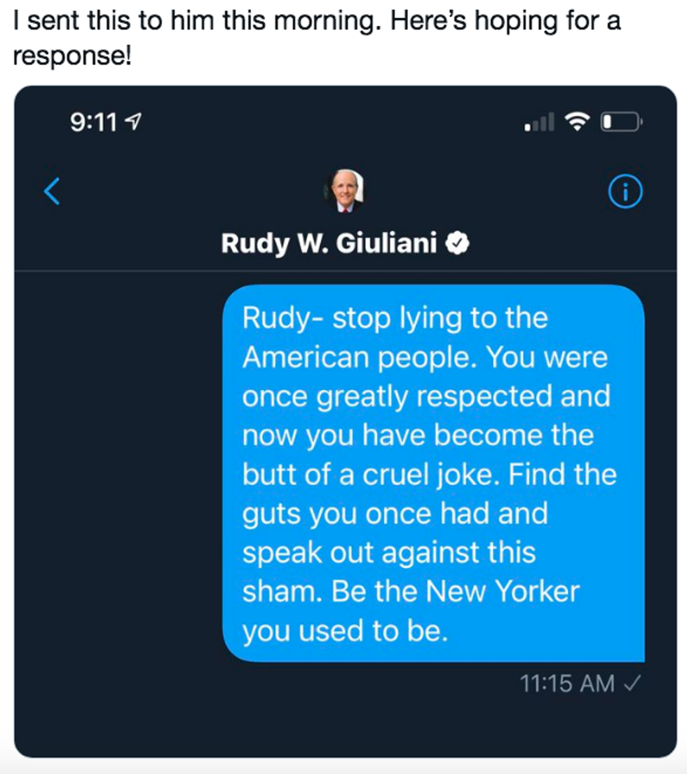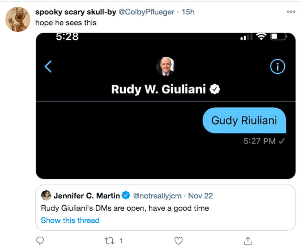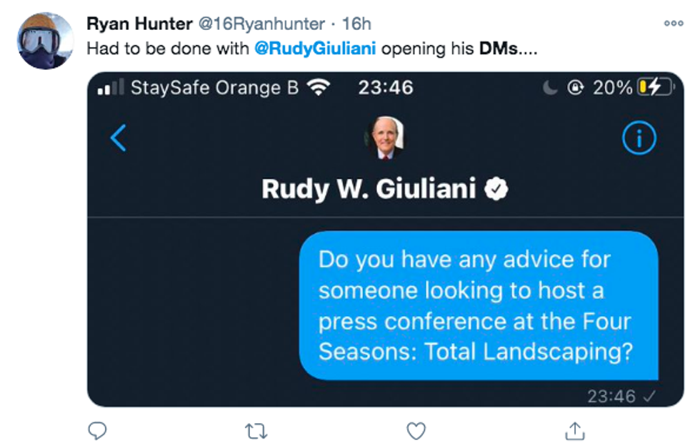 Now someone has noticed you can message Giuliani on Twitter and the internet is having a lot of fun with it.