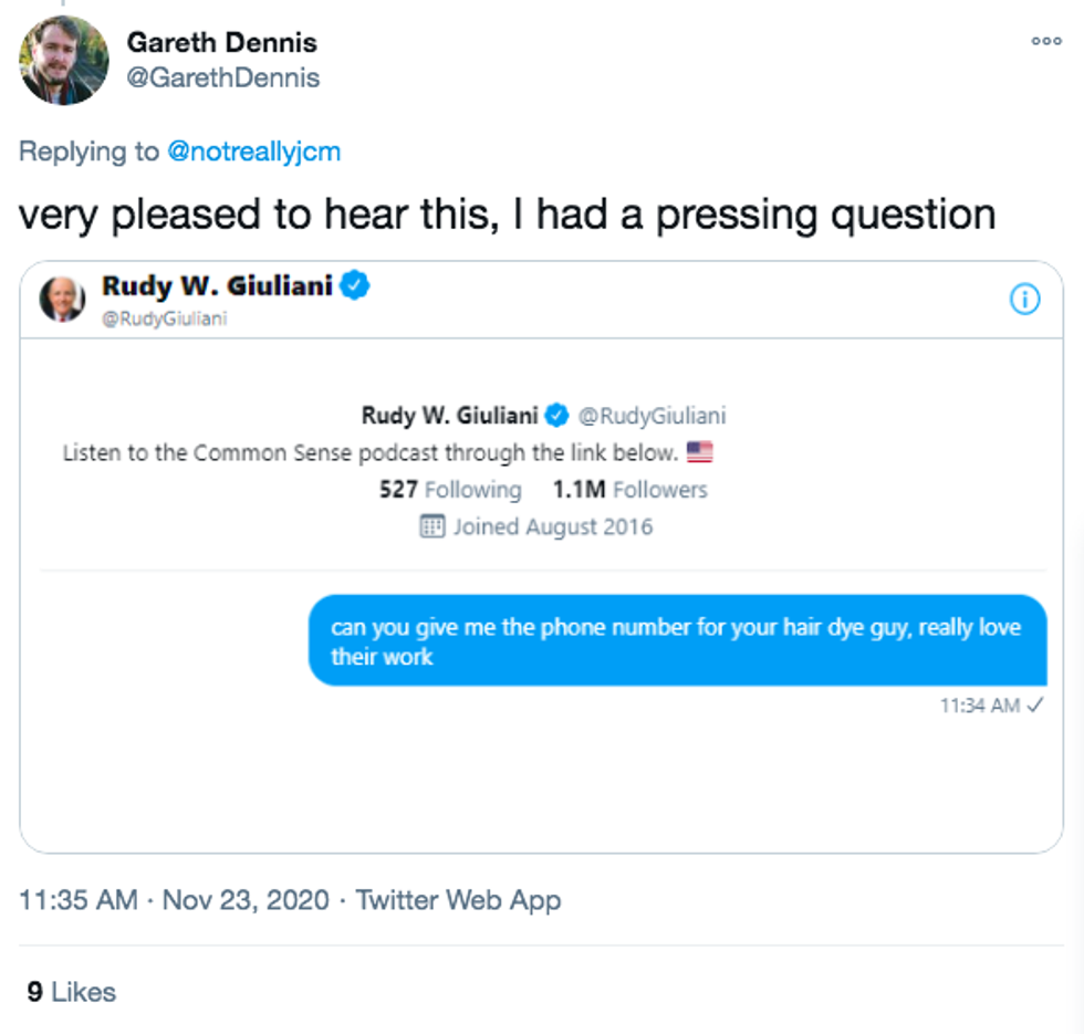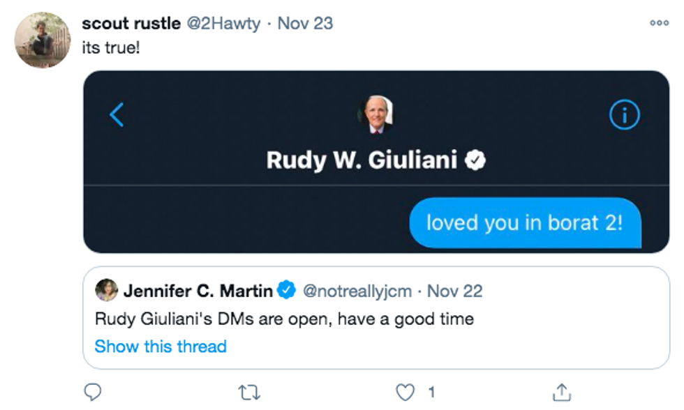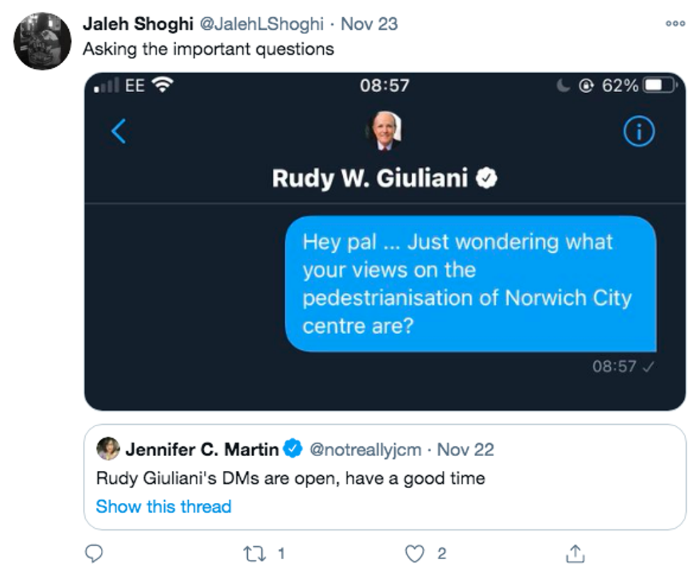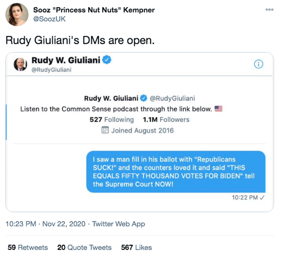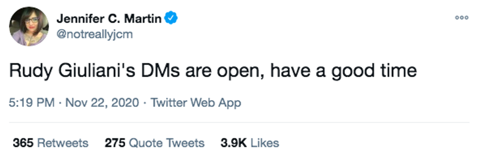 Now someone has noticed you can message Giuliani on Twitter and the internet is having a lot of fun with it.