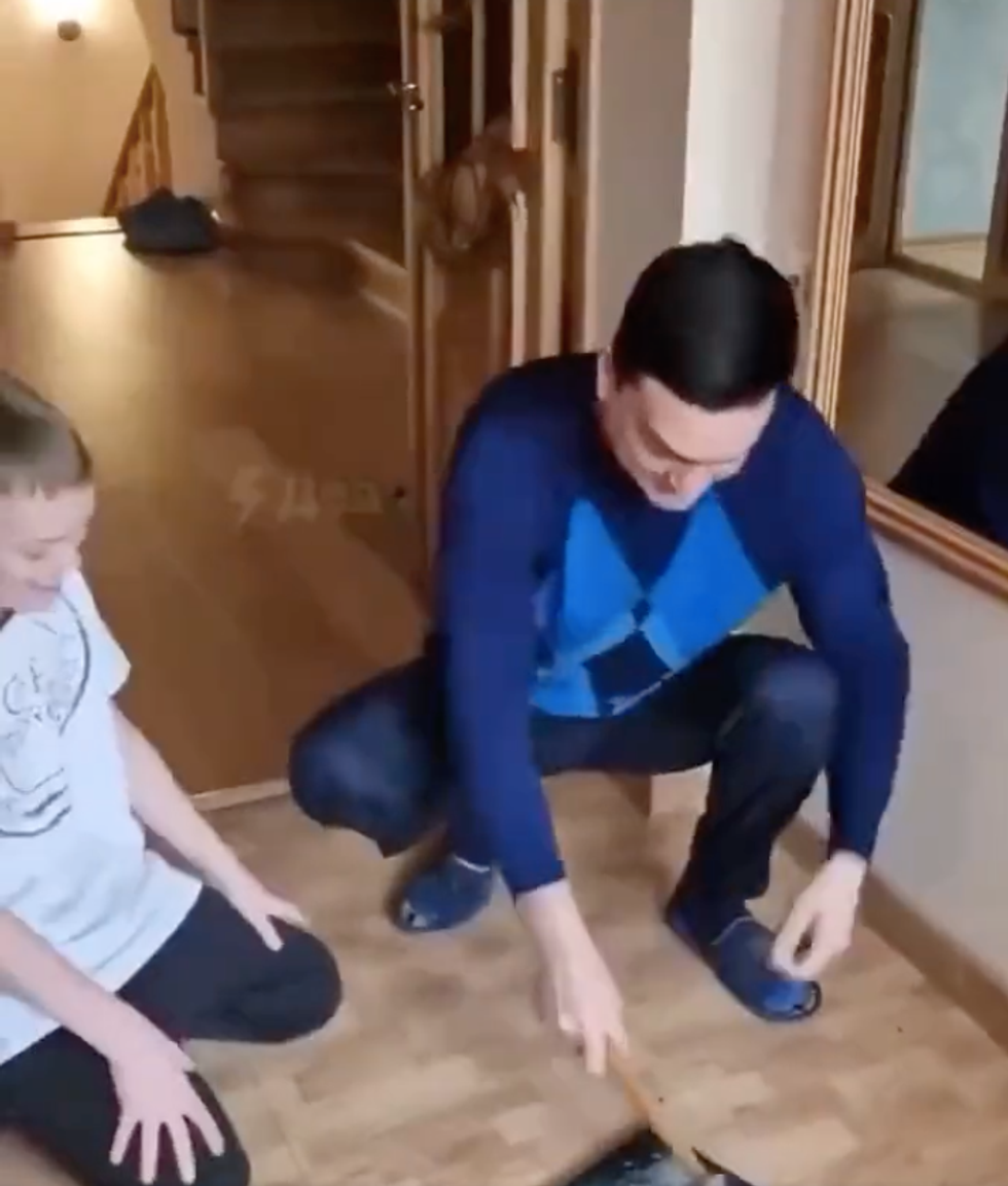 "That's our response to your sanctions," the man reportedly says. "We don't need your petty modern things, we can survive without them. Here, son, finish it off. I cut myself a little, but that's OK, we'll survive."