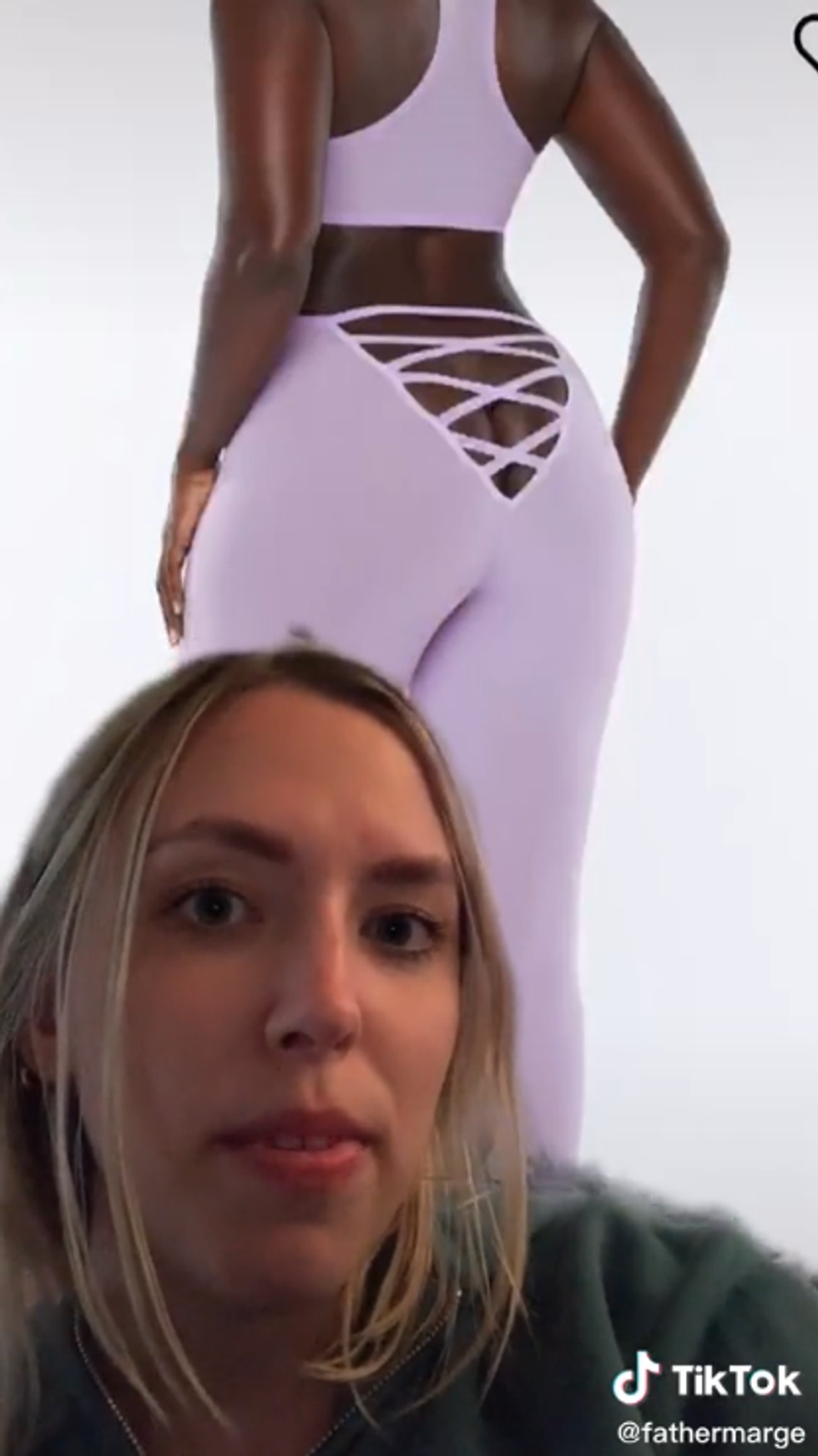 In the clip, which has been viewed more than 3 million times a woman, who has green-screened a picture of the leggings behind her says: “OK so I was on Fabletics to see this month's outfits because I had a credit to use...ummm...can someone at Fabletics tell me what this is? Things are getting a little bit crazy.”