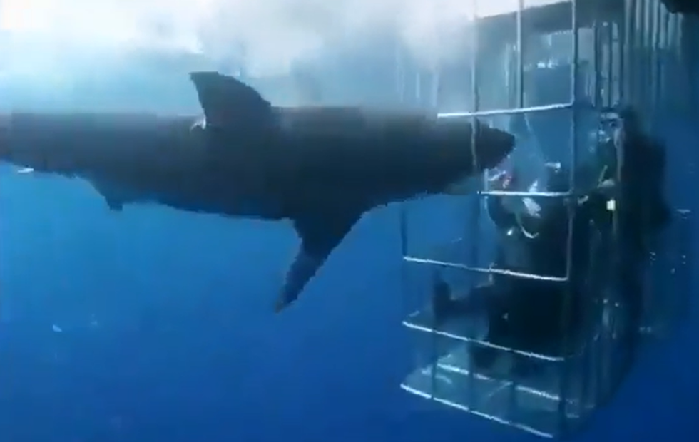 But some divers who were hoping to get a glimpse of the apex predator got way more than they bargained for after a shark tried desperately to reach them inside their diving cage.