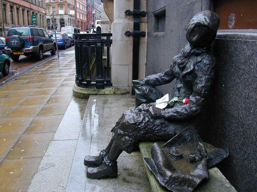 The subject of the Beatles song can be spotted resting on a Liverpool bench. Created by the entertainer Tommy Steele in 1982, it is dedicated to "all the lonely people."