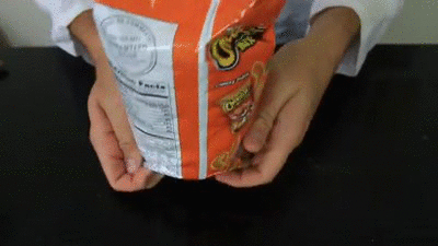 Wow (or at least worry) your friends by doing something weird with bags of crisps to turn them into bowls. You'll save on washing up and look cool.
