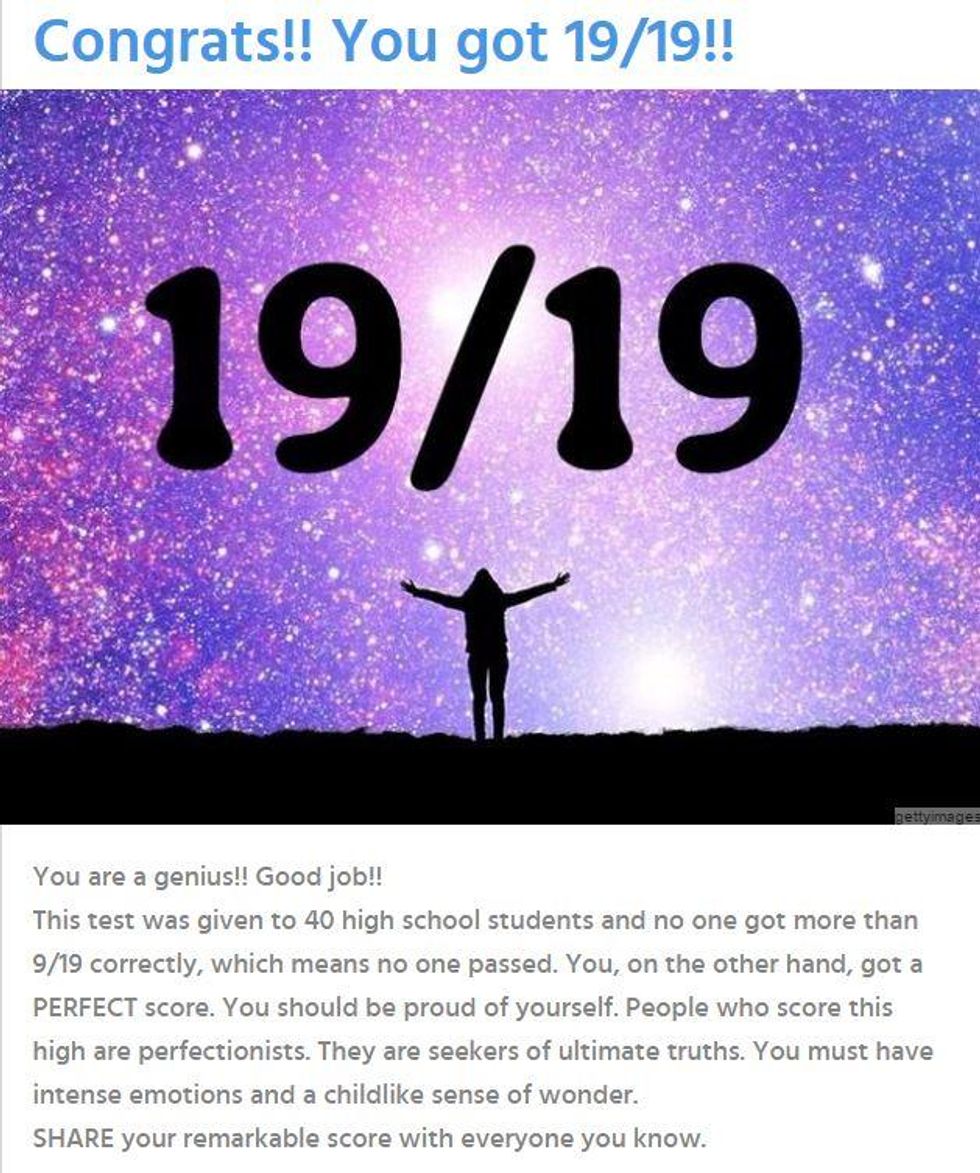 This test was given to 40 high school students and no one got more than 9/19 correctly, which means no one passed.